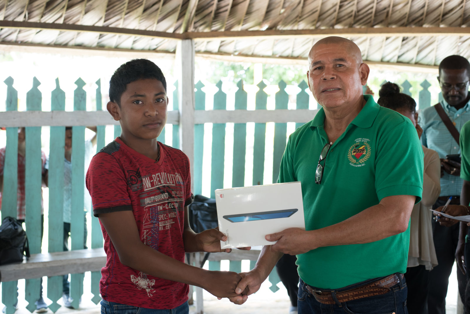 _DPI9615December 31, 2019 Fidel Edwards a secondary school student residing in Capoey receives his electronic tablet from Minister of Social Cohesion Dr. George Norton Image by: Karime Peters