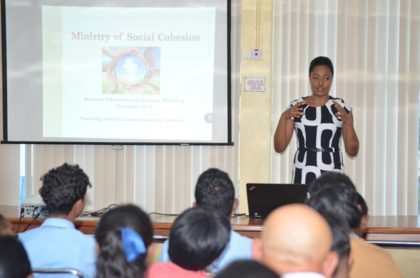 Georgetown, Guyana – (November 23, 2017) As the Ministry of Social Cohesion continues its mandate to foster a more unified society, it hosted its second Diversity Education and Inclusion Workshop with stakeholders from Community Policing Groups (CPGs) in Demerara-Mahaica (Region Four), a group it identifies as an important development partner. Fifty-one stakeholders from CPGs in ‘A’ and ‘C’ division, students Camille’s Institute of Business and Science and other stakeholders attended the session, which was held at the National Racquet Centre, Woolford Avenue, Georgetown this morning.
