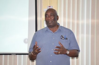 Dennis Pompey, Administrator for Guyana Community Policing Groups giving remarks at the Diversity Education and Inclusion Workshop.