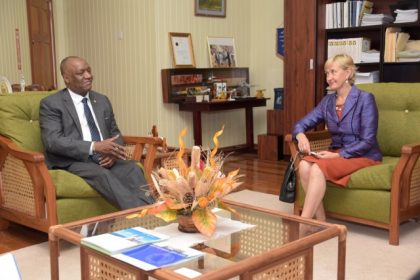 Georgetown, Guyana — (January 18, 2018) Minister of State, Mr. Joseph Harmon, was today paid a courtesy call by a delegation from Estonia, which included a member of the Estonian President’s Advisory Committee on the United Nations Security Council (UNSC) campaign, Ms. Marianne Mikko, Ambassador-at-Large and Head of UNSC Campaign Task Force, Mr. Margus Kolga, and UNSC Counsellor, Ms. Mari Tomingas. The meeting was held in the Minister of State’s office at the Ministry of the Presidency.