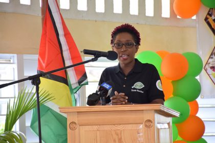 Head, Office of Climate Change, Ms. Janelle Christian during her address to the STEM students at the Launch of the STEM Pilot Programme in Bartica.
