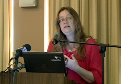 Traffic Expert, Lievense CSO, Jacqueline Mouws making her presentation on the new Demerara River Bridge feasibility study