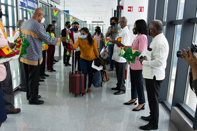 The Ministers welcomed passengers of two American Airlines flights from New York and Miami, as Guyana prepares to observe its 55th Independence Anniversary.