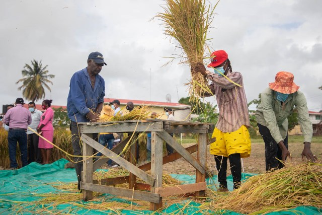 Minister of Agriculture, Hon. Zulfikar Mustapha on Wednesday visited the Burma Rice Research Station in Region Five, to witness the harvesting process of a quantity of the zinc candidate biofortified rice variety.