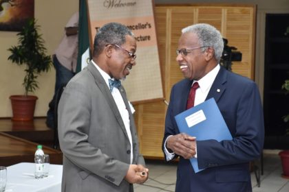 The University of Guyana’s Vice Chancellor Renaissance held the fourth in the series of lectures on Thursday at UG’s Education Lecture Theatre, Turkeyen campus. The lecture titled the Multiversity Universities of the Caribbean was presented by Sir George Alleyne and explored the role of universities across the Caribbean in generating trust and assuaging fear that is crucial for the maintenance and prospering of regional integration.