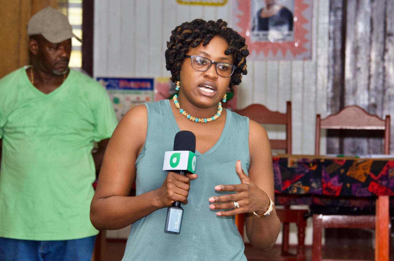 Minister of Public Service, Hon. Tabitha Sarabo-Halley makes a point during her discussions with the residents of Yarakita.