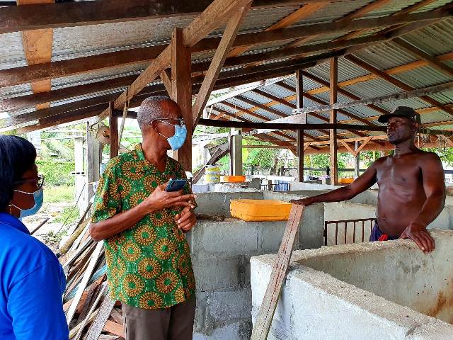 WhatsApp Image 2021-01-22 at 19.44.08January 22, 2021 Minister of Labour, Hon. Joseph Hamilton engaging one of the persons managing a pig rearing project in Wisroc, Linden.