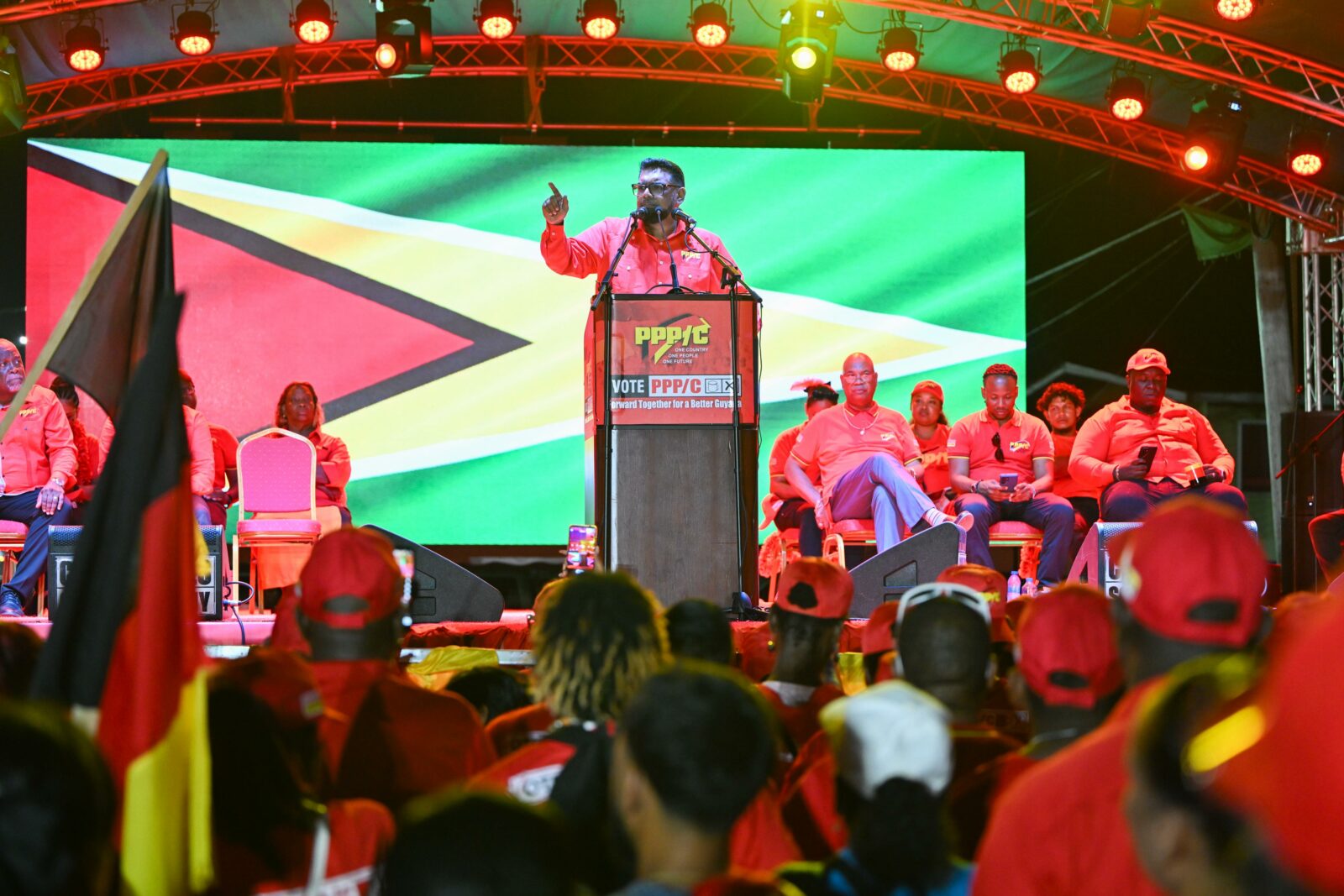 WhatsApp Image 2025-08-03 at 19.46.04August 3, 2025 President Dr Mohamed Irfaan Ali addresses a massive gathering of PPP/C supporters in Linden on Sunday