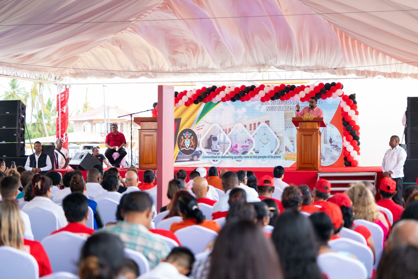 WhatsApp Image 2025-08-28 at 4.16.34 PM (4)August 28, 2025 President Dr Mohamed Irfaan Ali addresses the gathering during at he commissioning of the new state-of-the-art regional hospital at Number 75 Village, East Berbice–Corentyne,