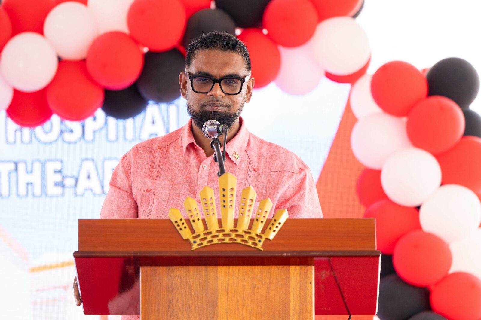 WhatsApp Image 2025-08-28 at 4.16.34 PM (5)August 28, 2025 President Dr Mohamed Irfaan Ali addresses the gathering at the opening of the No. 75 Village Regional Hospital